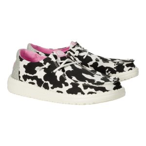 The Wendy Funk Cow is legen-dairy. With elastic laces, oh-so-light outsole and cushy, removable foam insole this style goes down in comfort history. Shoe Specs: Printed textile upper Elastic laces Lightweight flexible outsole Easy-on system Travel ready Removable foam insole Relaxed Fit: Ample roominess allows for laid-back, easygoing feel