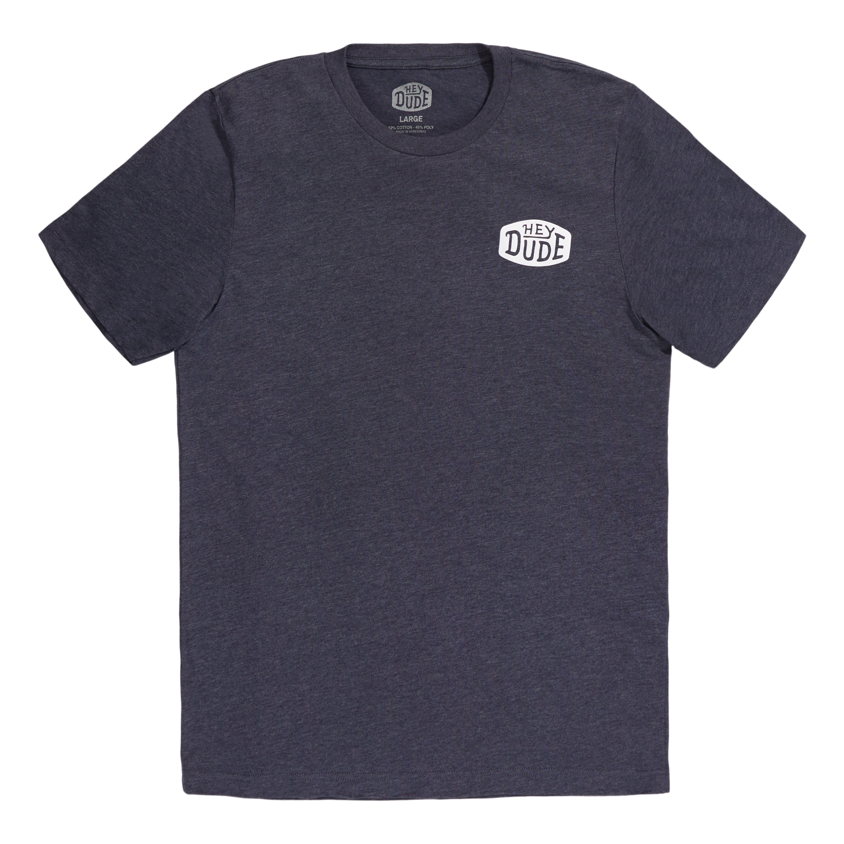 Level up your basics with our ultra-soft, heather-knit crewneck tee. Tailored fit with side seams and shoulder taping for a flattering silhouette, and HEYDUDE buckle logo for brand cred.