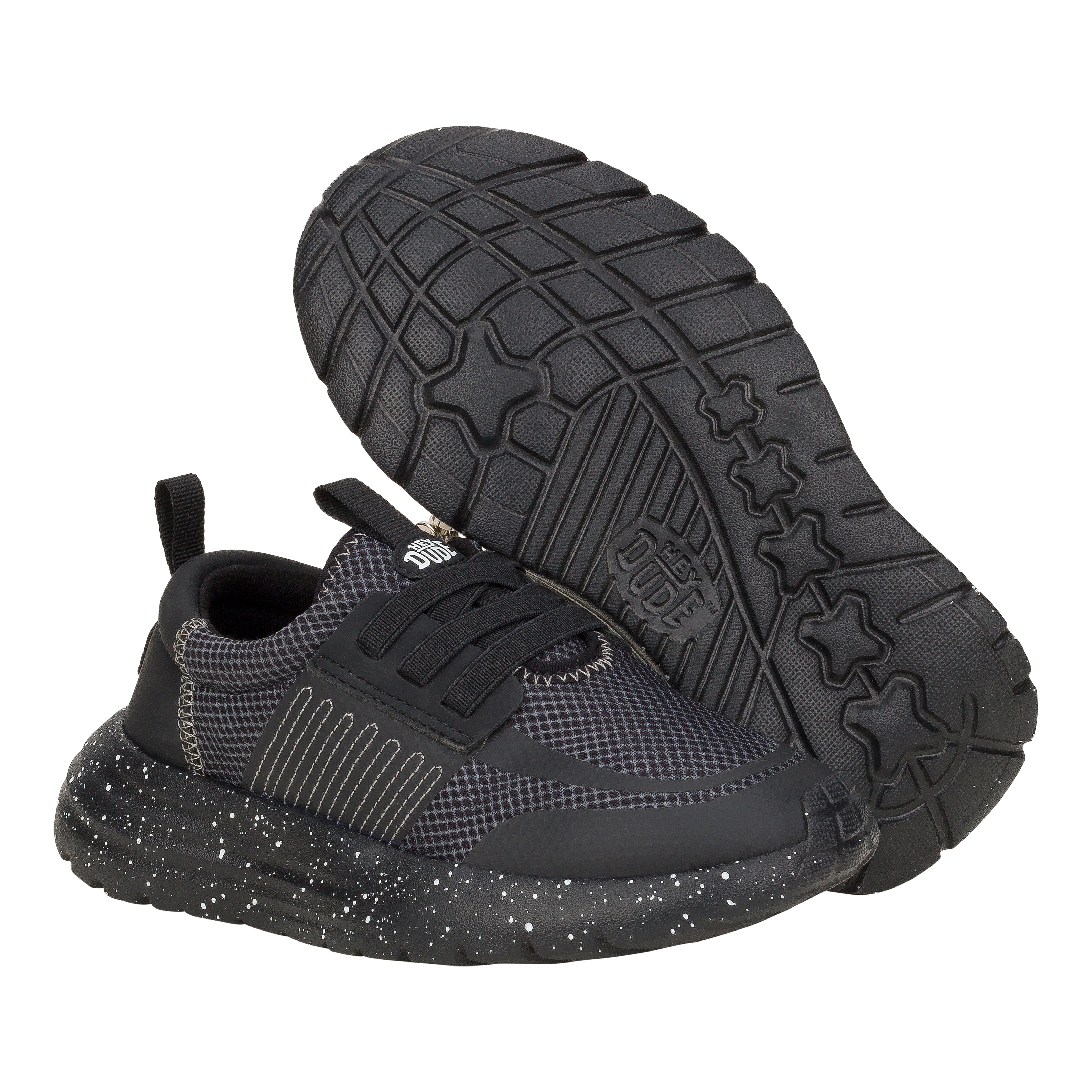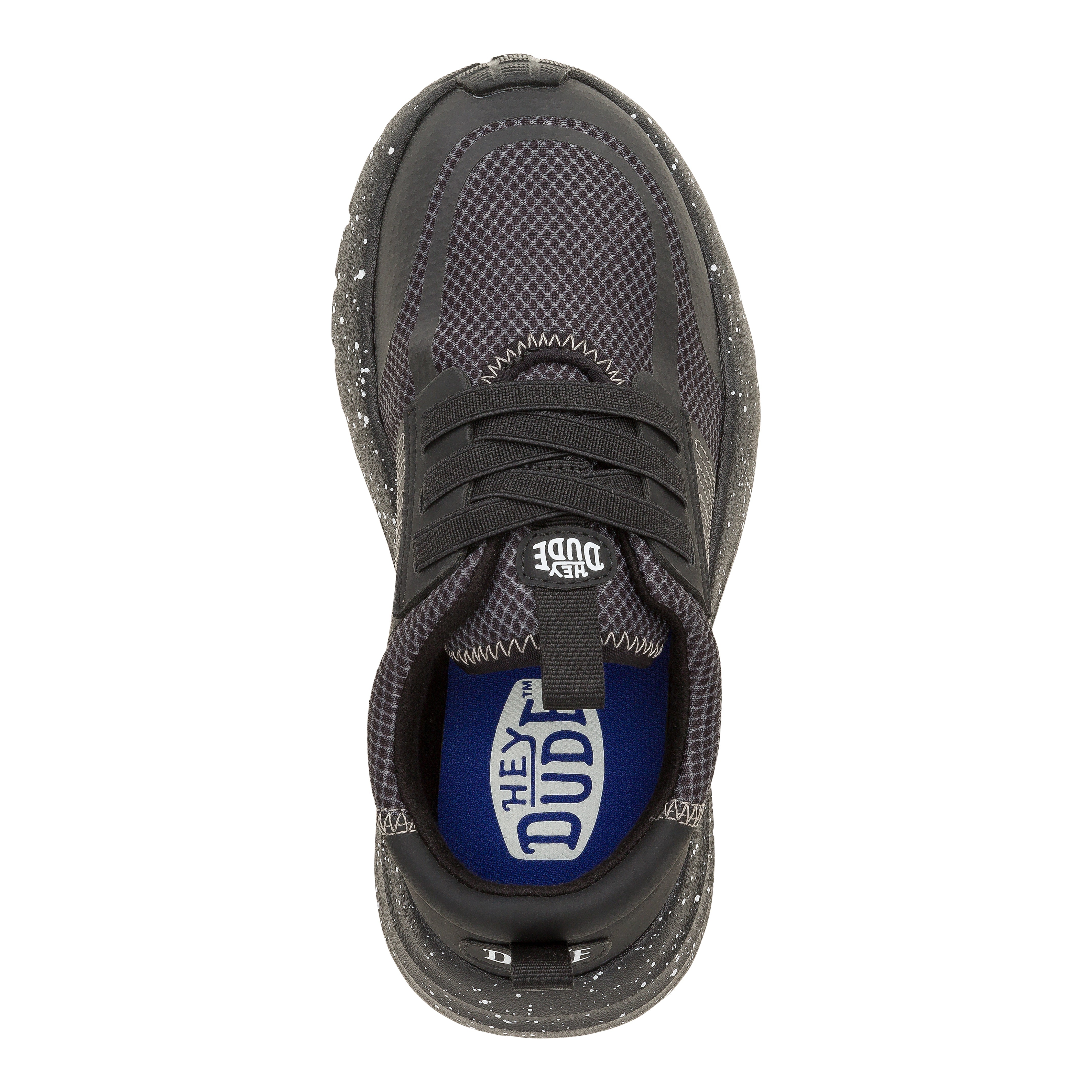 Varsity level kicks for varsity level fits. Extra stretch, extra wide opening and extra cool heel pull tabs make these the easiest kicks your kiddo will ever put on. Take these stretch laces, open mesh upper, and speckled midsole and hit the playground.