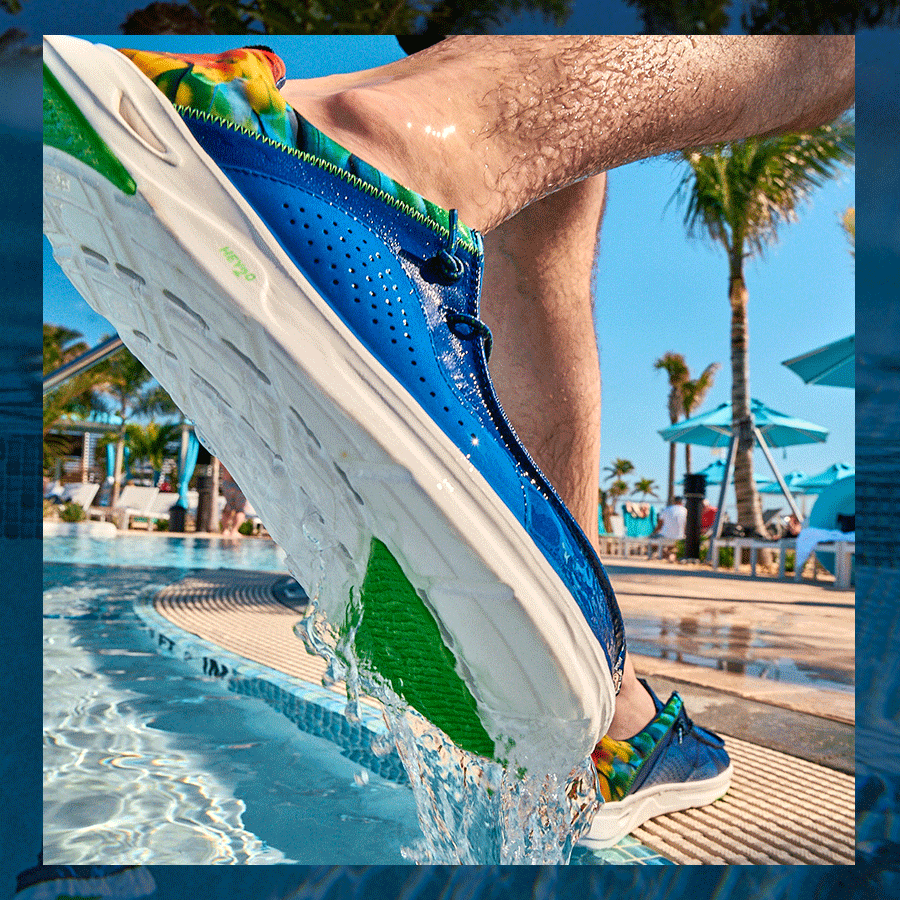 The Wally Hey2O Margaritaville® will take you from the beach to the bar to the pool in paradise-level comfort. Perforated outsole and dry-in-the-sun fabric made for aimless wading. Light as a tropical breeze with breathable vents, plus a heel pull tab for slipping off and sliding your toes into the sand to watch the sunset with a frozen concoction in hand.