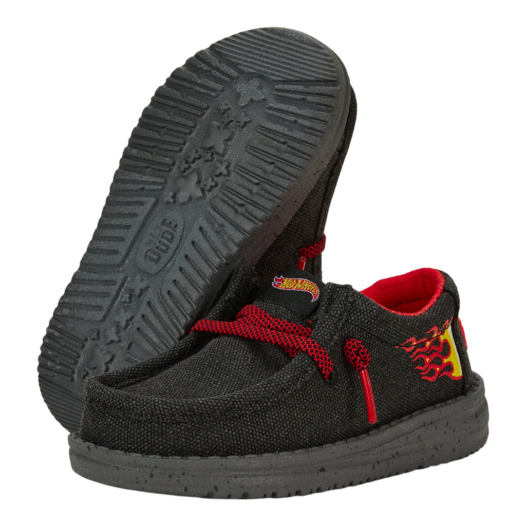 Bring the need for speed to their feet with these red-hot HEYDUDE™ x Hot Wheels™ go-to’s! Built for blazing adventures, these lightweight kicks feature a checkered flag-inspired design, easy-on system and no-tie elastic laces. Cool flames lick the heels, and the comfy checkered footbed keeps the party going all day long.