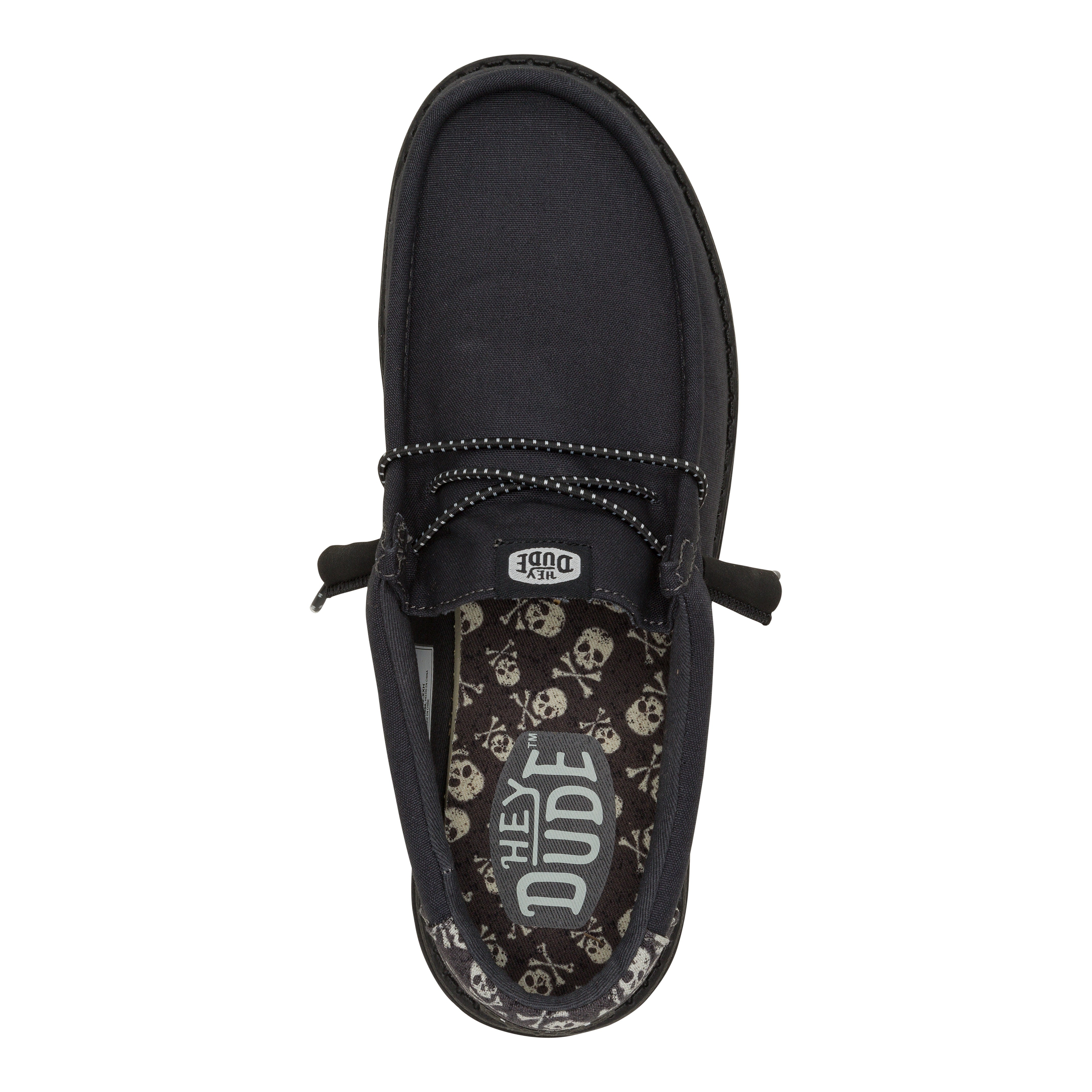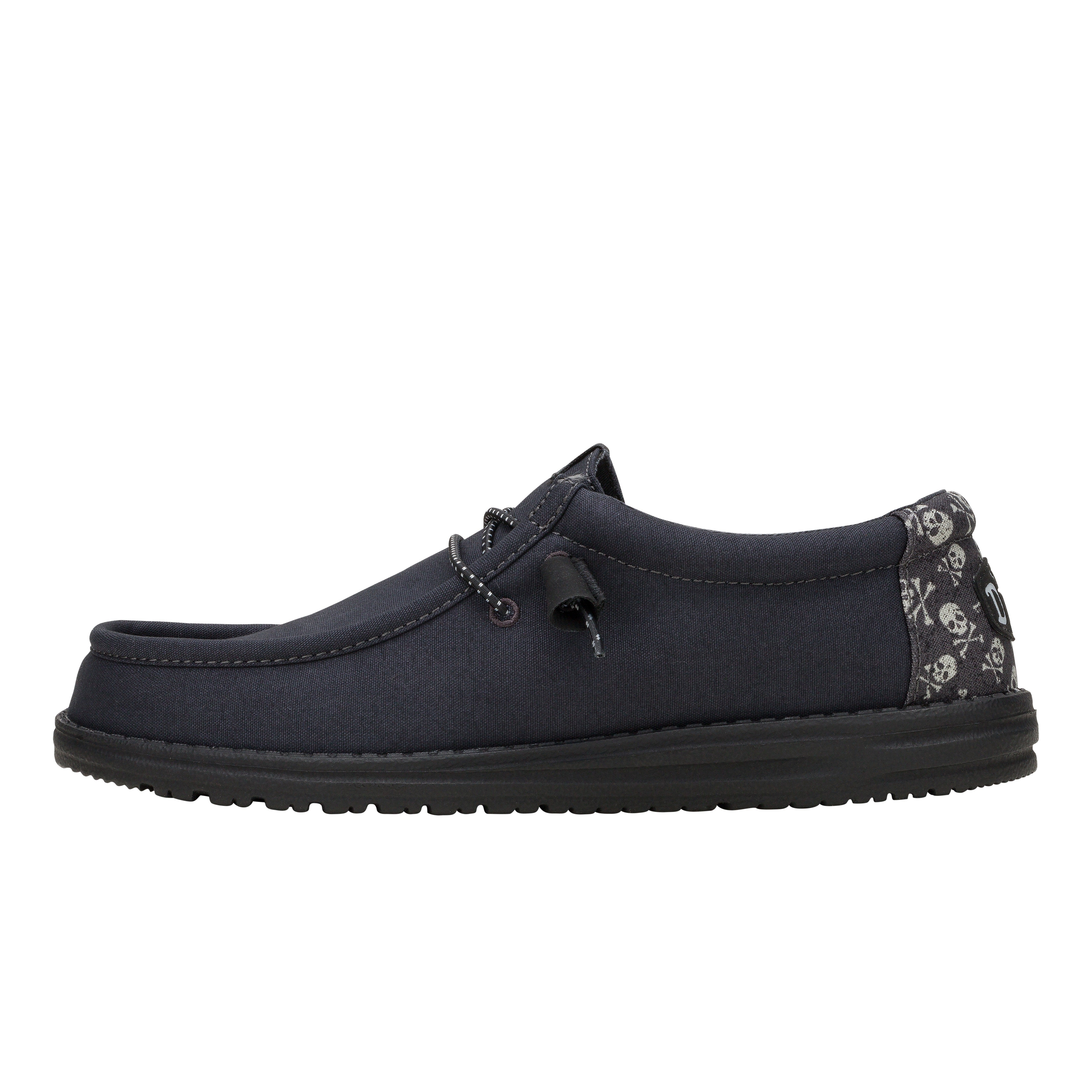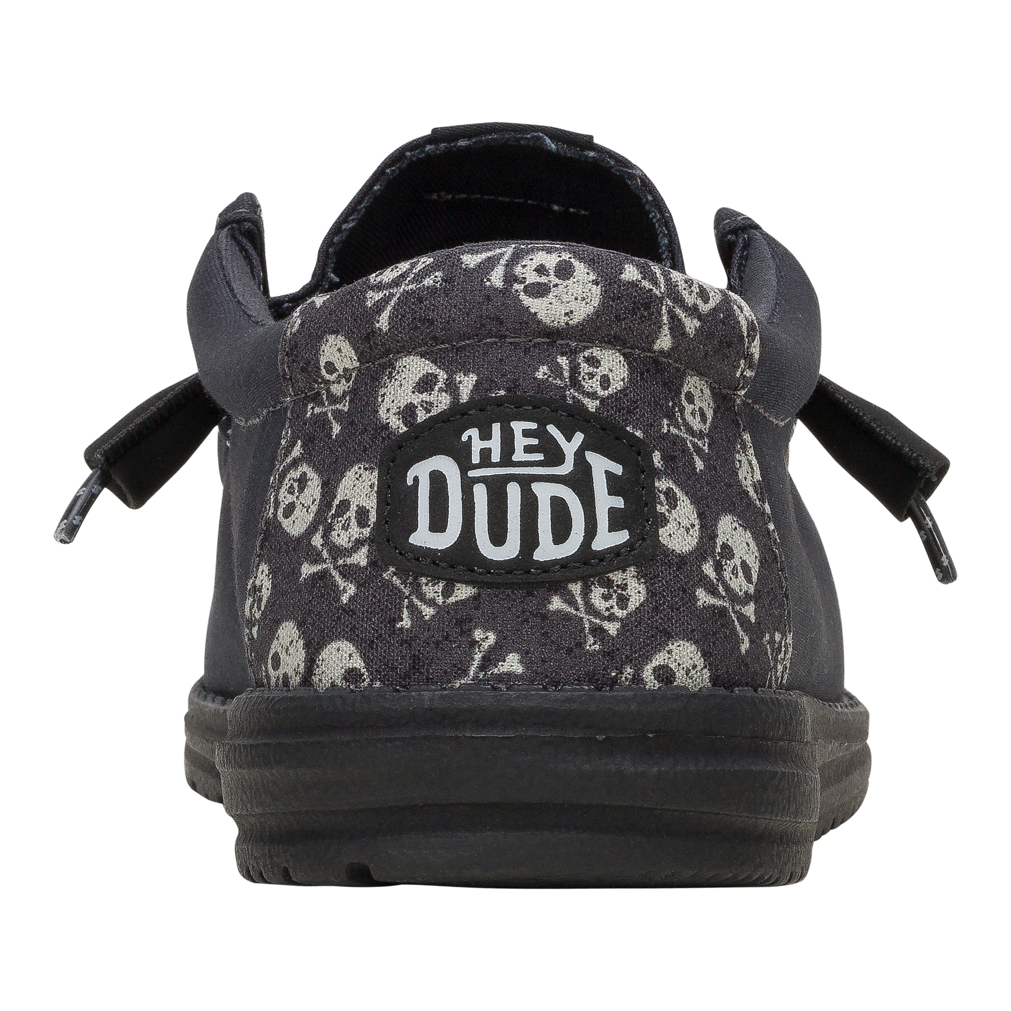 Look scary good in these Wally Skull and Bones. Featuring our easy-on elastic laces, foot hugging comfort, and a spooky cool skull print on the back heel. If you think these are scary, try going a day without comfy kicks. Horrifying.