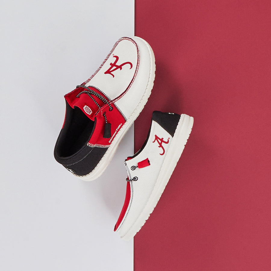 The Men’s Wally Tri now screams school spirit! Show your support for the Alabama Crimson Tide in style with a unique design featuring the iconic logo and bold team colors. Made with signature HEYDUDE™ comfort, lightweight materials, and a slip-on design, these are perfect for all-day wear to bring you and your crew from the tailgate to the game.
