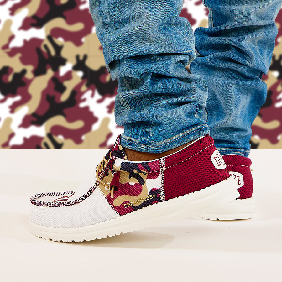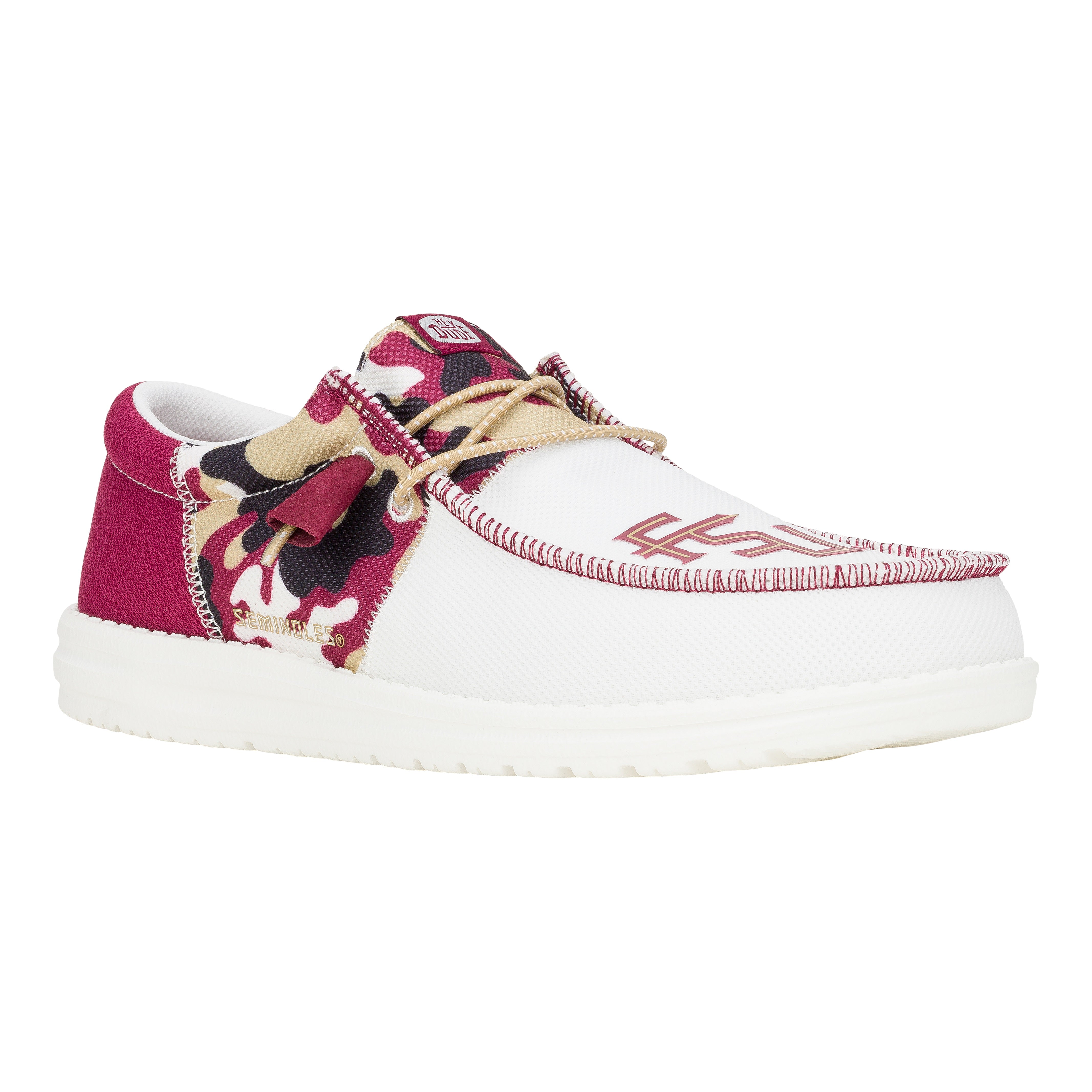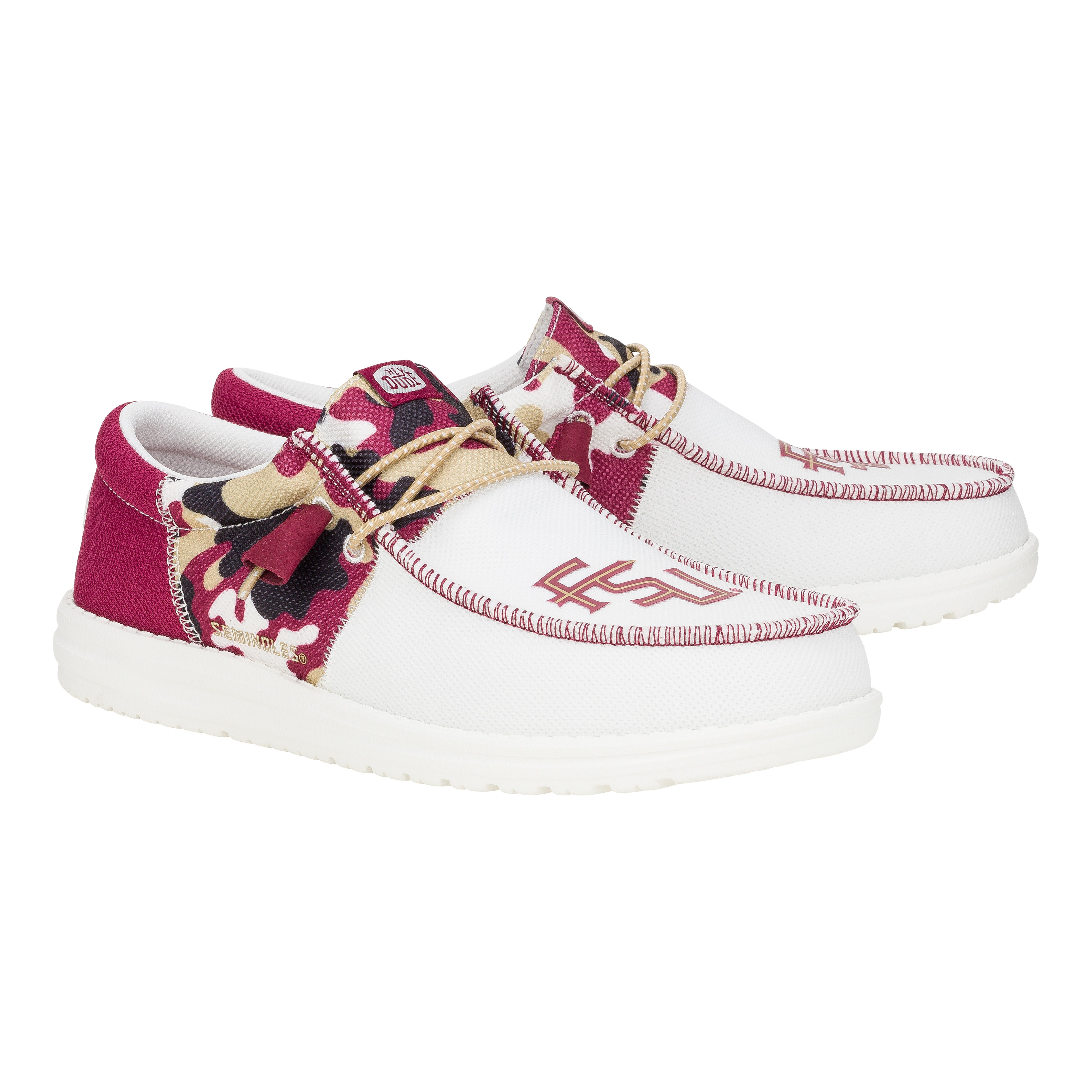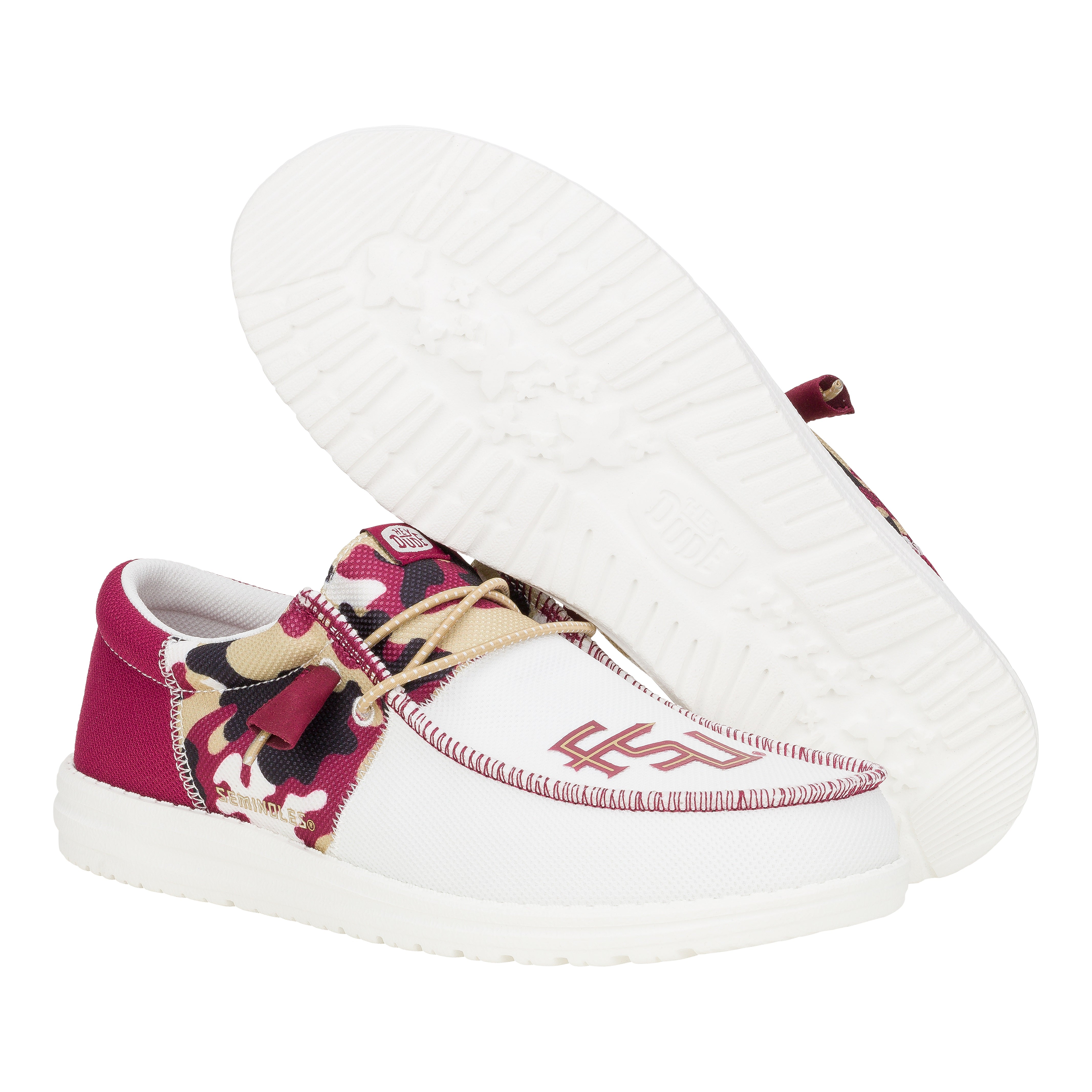 Yes, we know you want to scream your love for Florida State University from the rooftops (or stadium tops), but with this Wally Tri you can swirl up your spirit in covert camo coloring. Ultralight outsole, flex-and-fold technology, removable insoles and easy-on lacing system. Fear the spear.