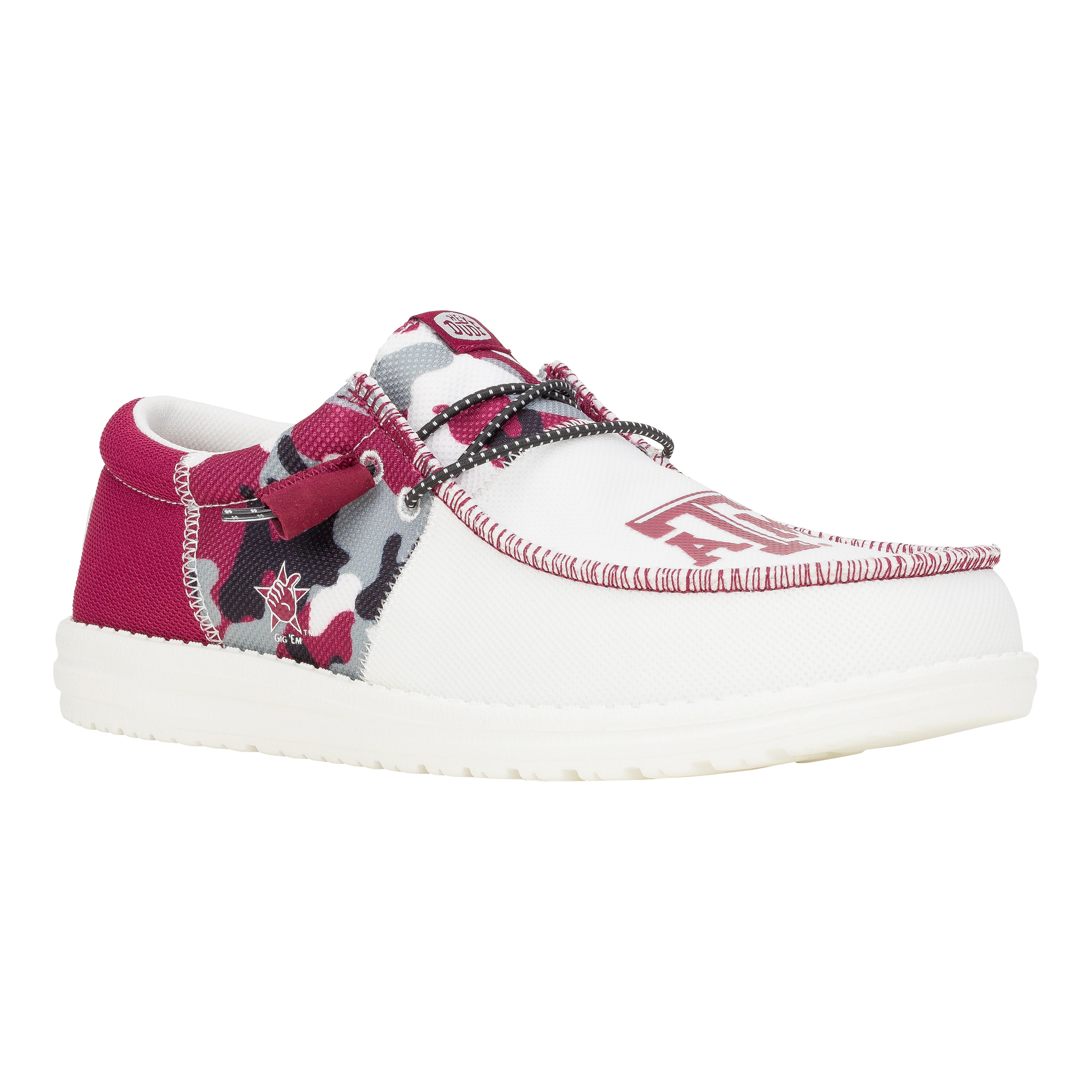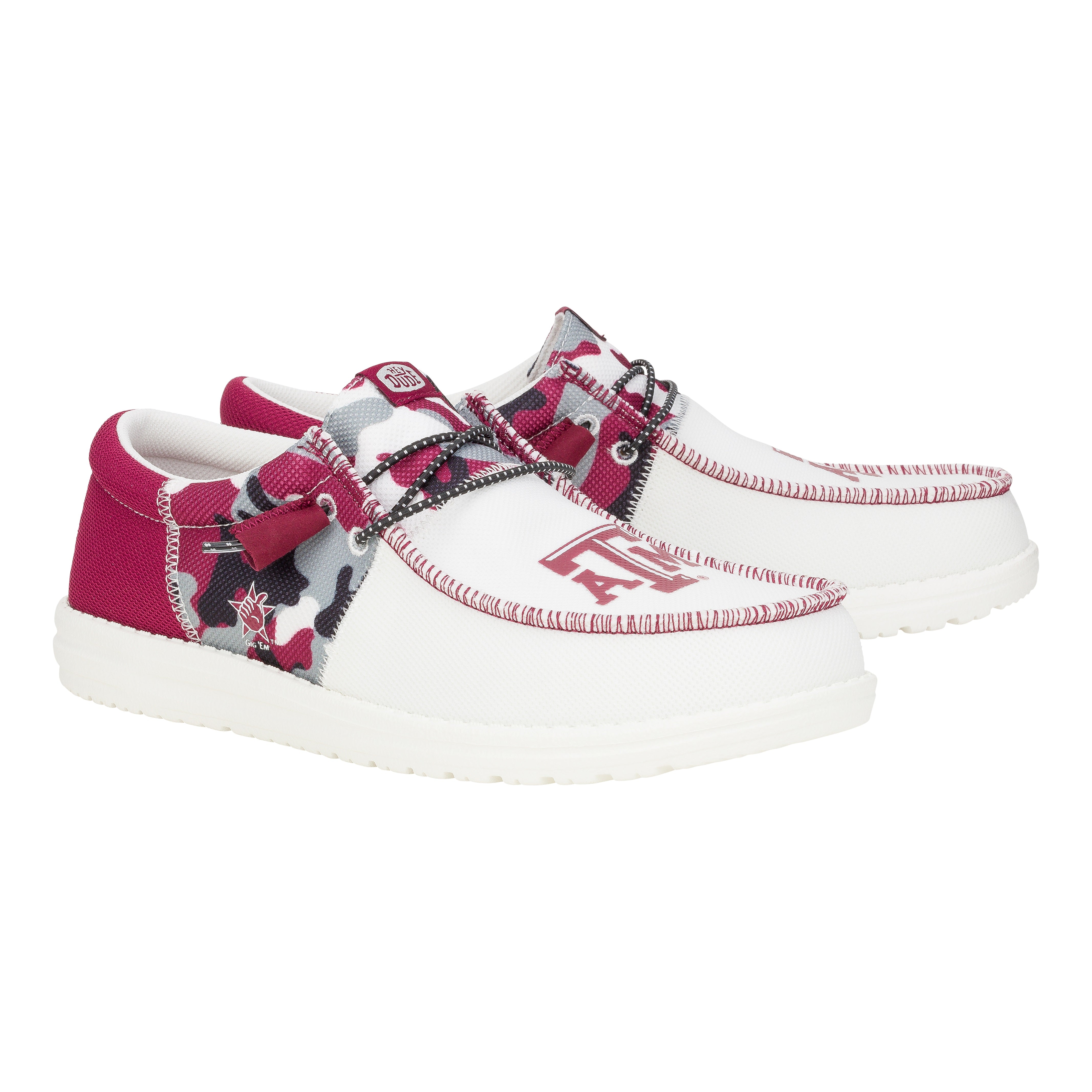 Yes, we know you want to scream your love for Texas A&M University from the rooftops (or stadium tops), but with this Wally Tri you can swirl up your spirit in covert camo coloring. Ultralight outsole, flex-and-fold technology, removable insoles and easy-on lacing system. Maroon Out!