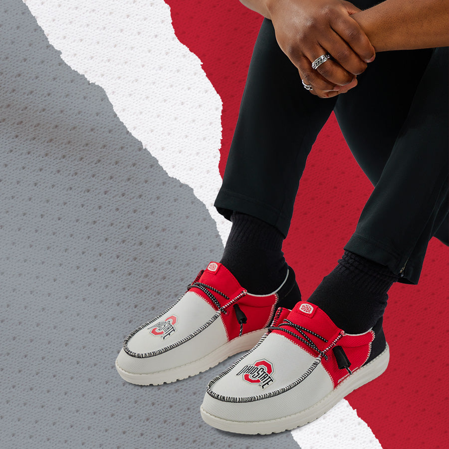 The Wally Tri now screams school spirit! Show your support for Ohio State University in style with a unique design featuring the iconic logo and bold team colors. Made with signature HEYDUDE™ comfort, lightweight materials, and a slip-on design, these are perfect for all-day wear to bring you and your crew from the tailgate to the game.
