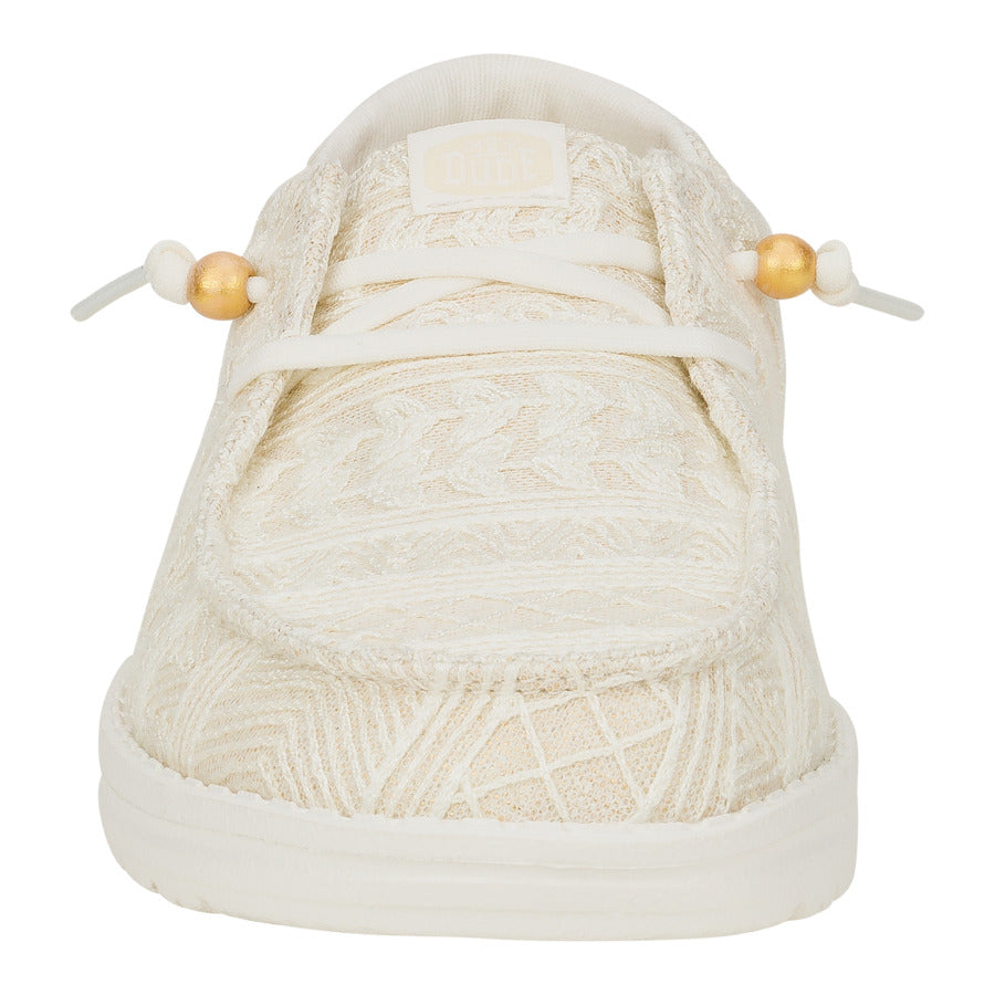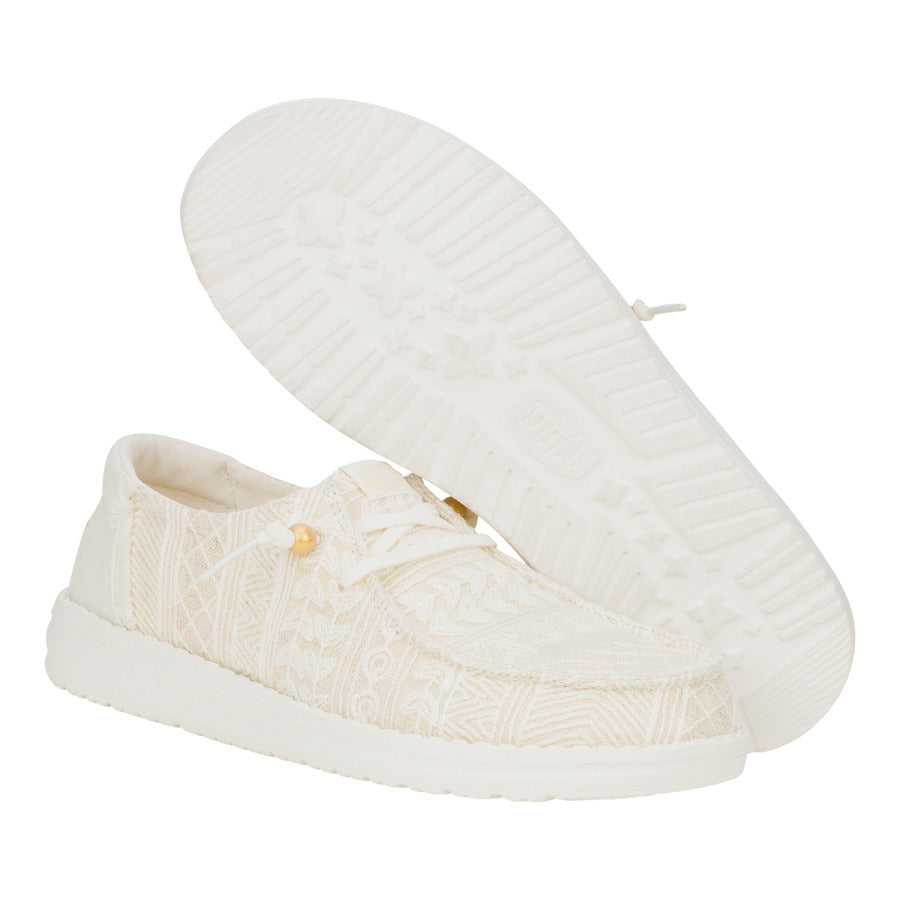 Level up your boho chic with the Wendy Crochet Lace!  These flirty go-to’s weave together breezy crochet lace with a touch of fringe flair at the heel.  Slip-on and go in effortless style, all thanks to our easy-on system and elastic laces. From strolls on the beach to summer soirées, these kicks will be your new warm-weather bestie.