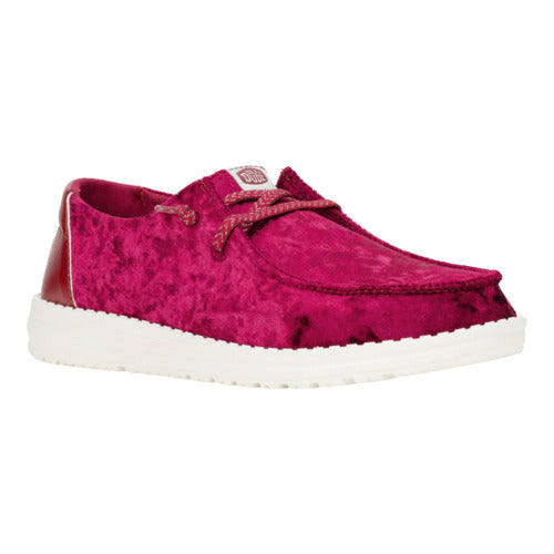 Nothing says cool like crushed velvet. An iridescent faux leather heel, textile lining and crushed velvet upper will have you crushing the day in no time. Stay cool in Wendy Crushed Velvet.
